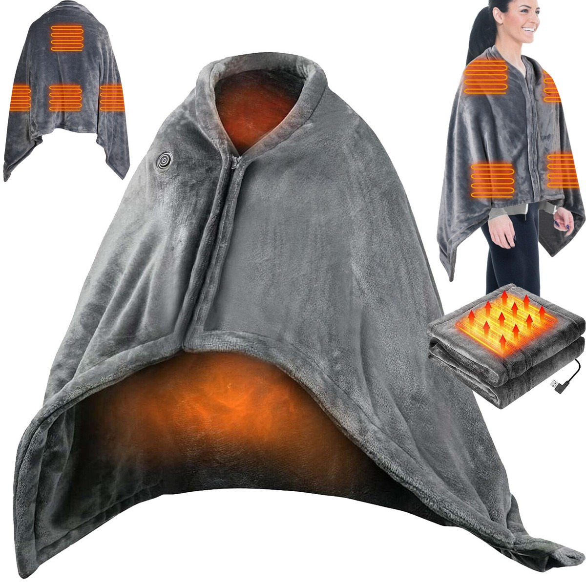 The Vital Heating Blanket is a soft, wearable, USB-powered blanket with heat levels that can be changed. It heats up quickly and evenly, making you feel cozy anywhere, at any time.